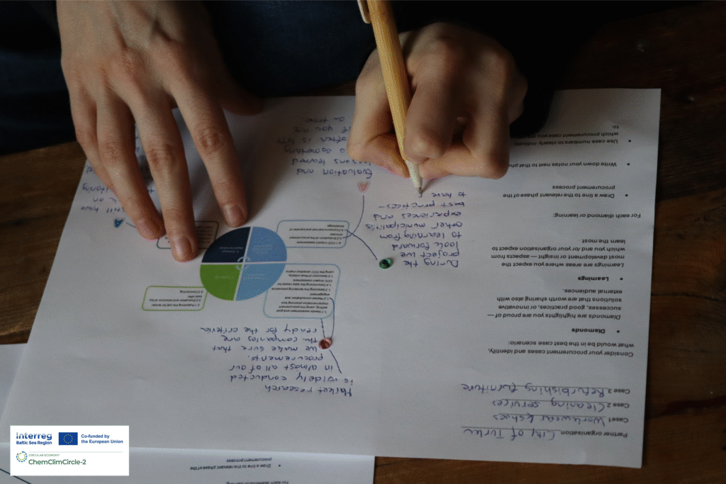 Paaiškėjo, kad situacija yra labai įvairi. Partnerių pirkimų atvejai vystomi skirtinguose sektoriuose – nuo statybos ir informacinių ir ryšių technologijų (IRT) iki tekstilės, valymo ir maitinimo paslaugų. Ši įvairovė rodo skirtingus požiūrius, atspindinčius vietos poreikius, tačiau visus juos sieja tas pats tikslas – ChemClimCircle (CCC) metodikos taikymas praktikoje.