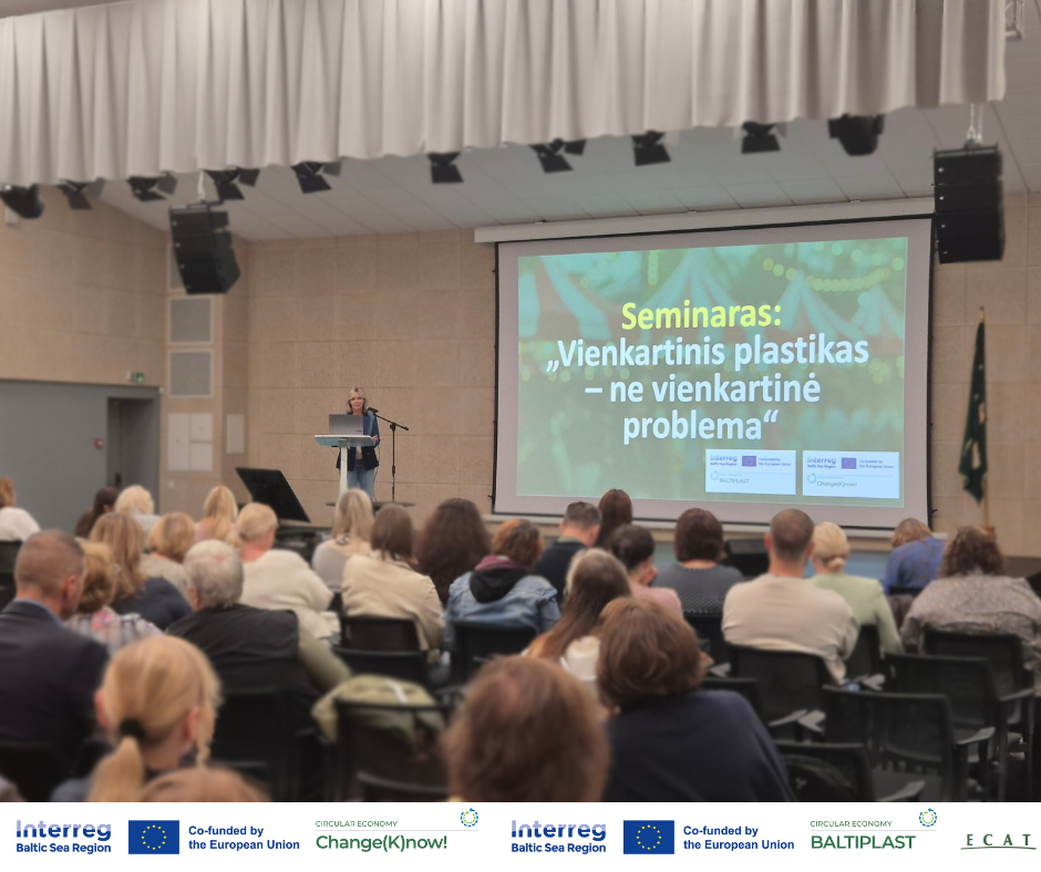 Rugsėjo – spalio mėn. šešiuose Lietuvos miestuose – Kaune, Utenoje, Panevėžyje, Ukmergėje, Kaišiadoryse ir Alytuje vyko seminarų ciklas, kurio tikslas – skatinti vienkartinio plastiko mažinimą ir apskritai tvaresnį vartojimą. Renginiuose dalyvavo savivaldybių, įmonių, nevyriausybinių organizacijų atstovai, kolegijų studentai ir dėstytojai. Šis seminarų ciklas surengtas įgyvendinant Interreg Baltijos jūros regiono 2021 -2027 m. programos projektus „Baltiplast“ ir „Change(K)now“.